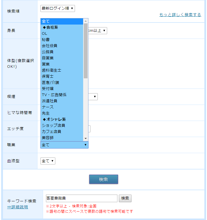プロフィール検索では、居住地・年齢などと共に、職業を選択する欄があるからです。
